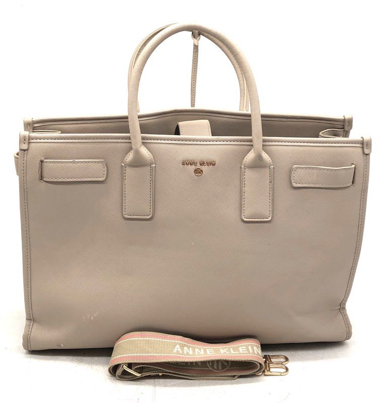 Anne Klein Beige Faux Leather Satchel Tote Bag Crossbody Strap Gold Hardware