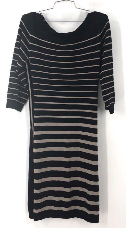 Ann Taylor Women's NWT Merino Wool Sweater Dress Black Tan Striped Sz L