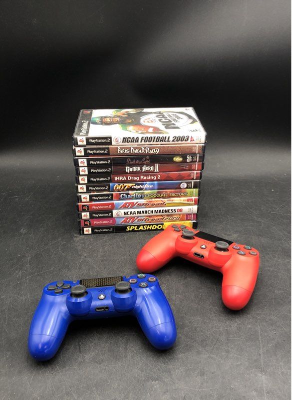 2 PS4 DualShock 4 Controllers & 10 PS2 Game Lot Guitar Hero 007 Nightfire