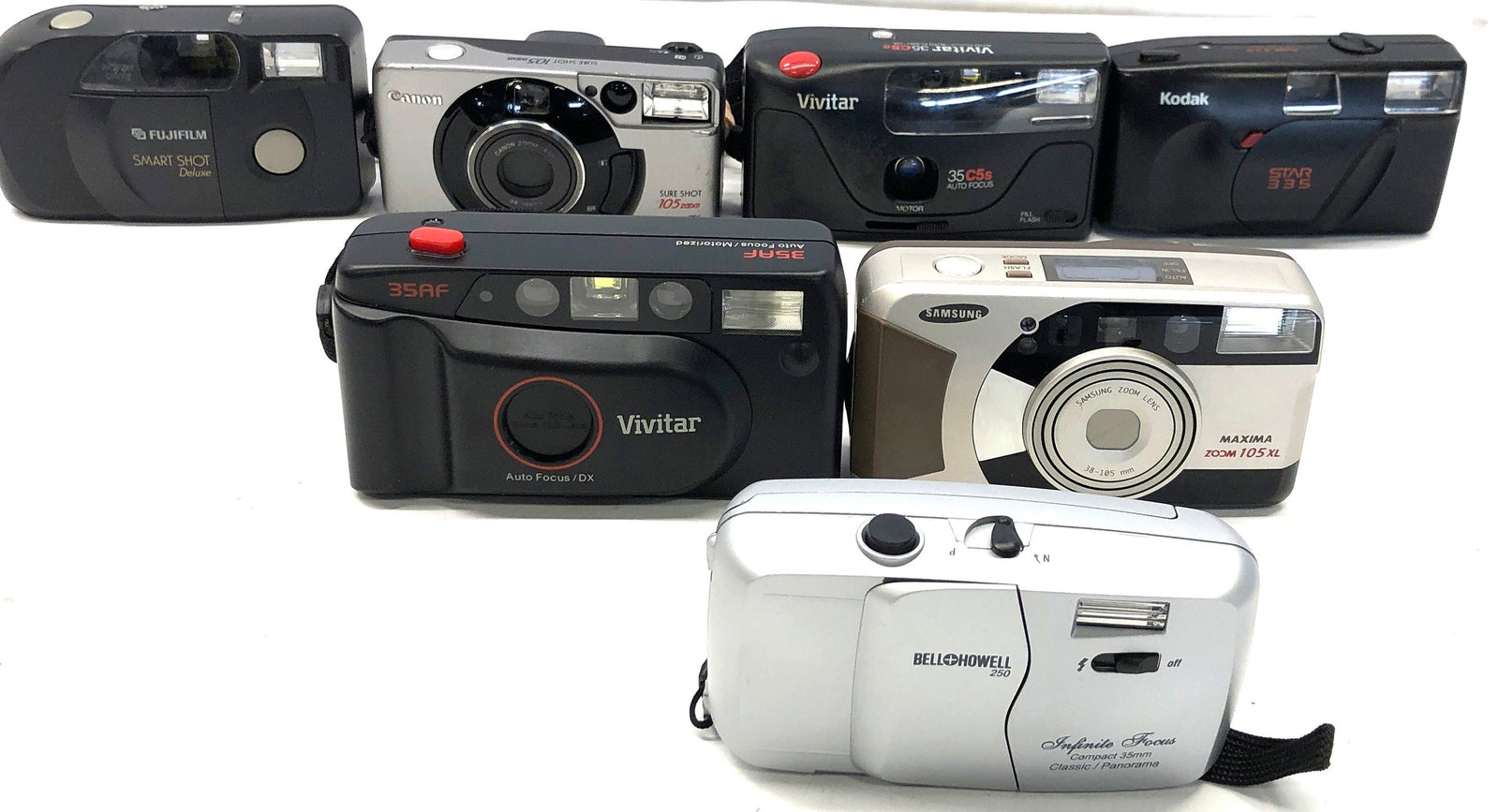 Vintage 35mm Film Camera Lot Canon Samsung Kodak Vivitar Fujifilm 7 Pieces