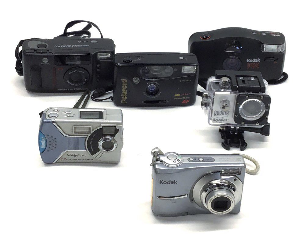 Mixed Film & Digital Point & Shoot Camera Lot 6 Pcs Kodak Minolta Polaroid