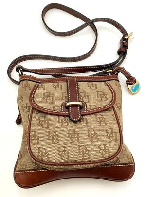 Dooney & Bourke Brown Signature Print 'Letter Carrier' Crossbody Bag (+COA)