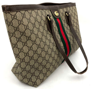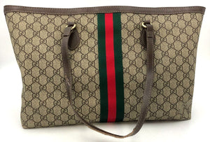 Gucci Inspired Ophidia Signature GG Canvas Print Tote with Green/Red Web Stripe