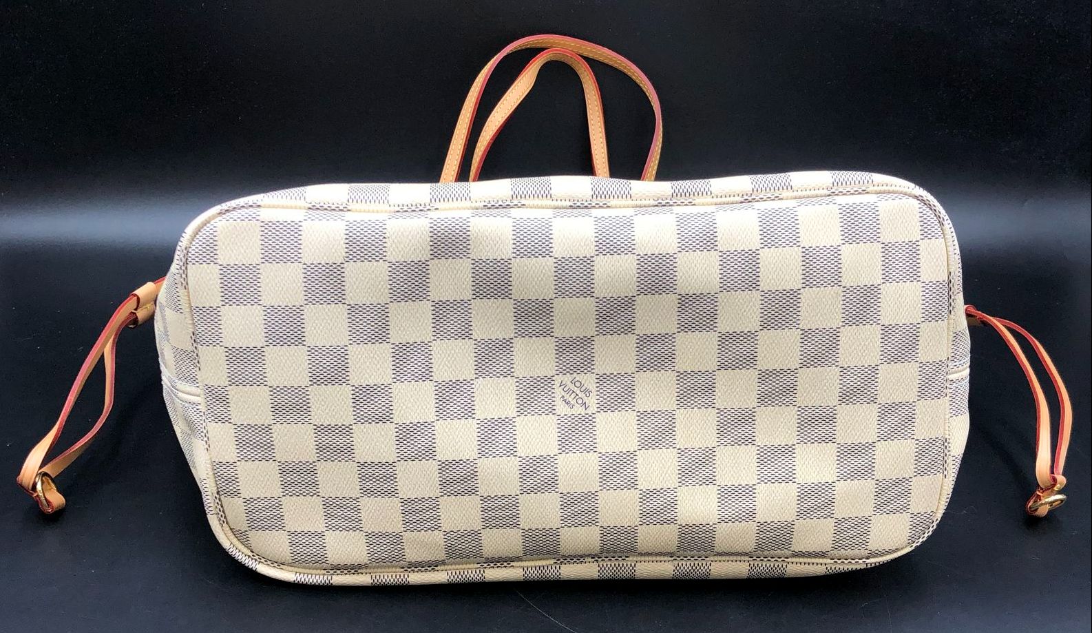 Louis Vuitton Inspired Cream White/Blue Signature Damier Print Canvas Tote
