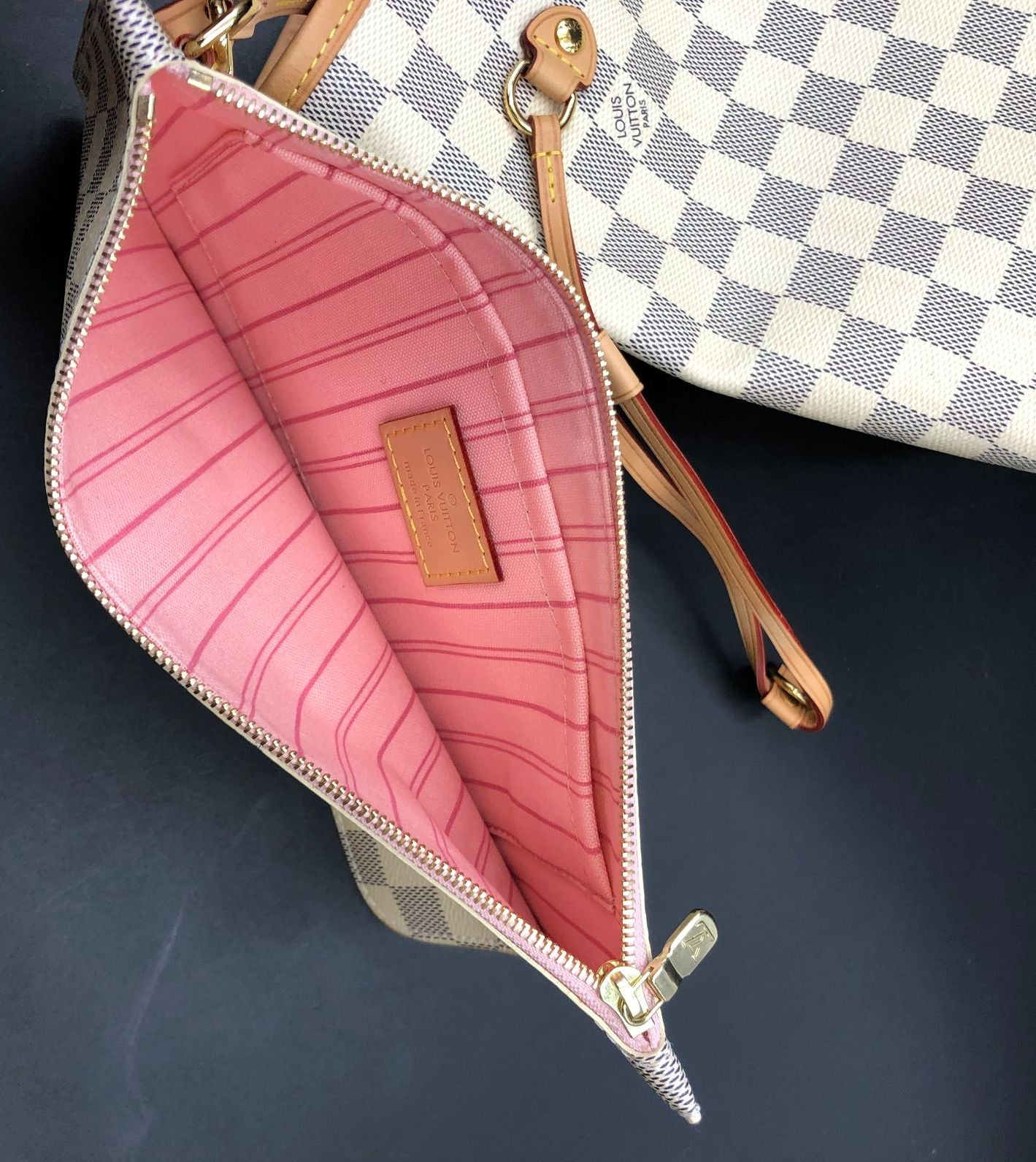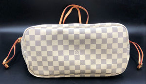 Louis Vuitton Inspired Cream White/Blue Signature Damier Print Canvas Tote with Matching Wristlet