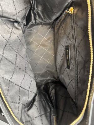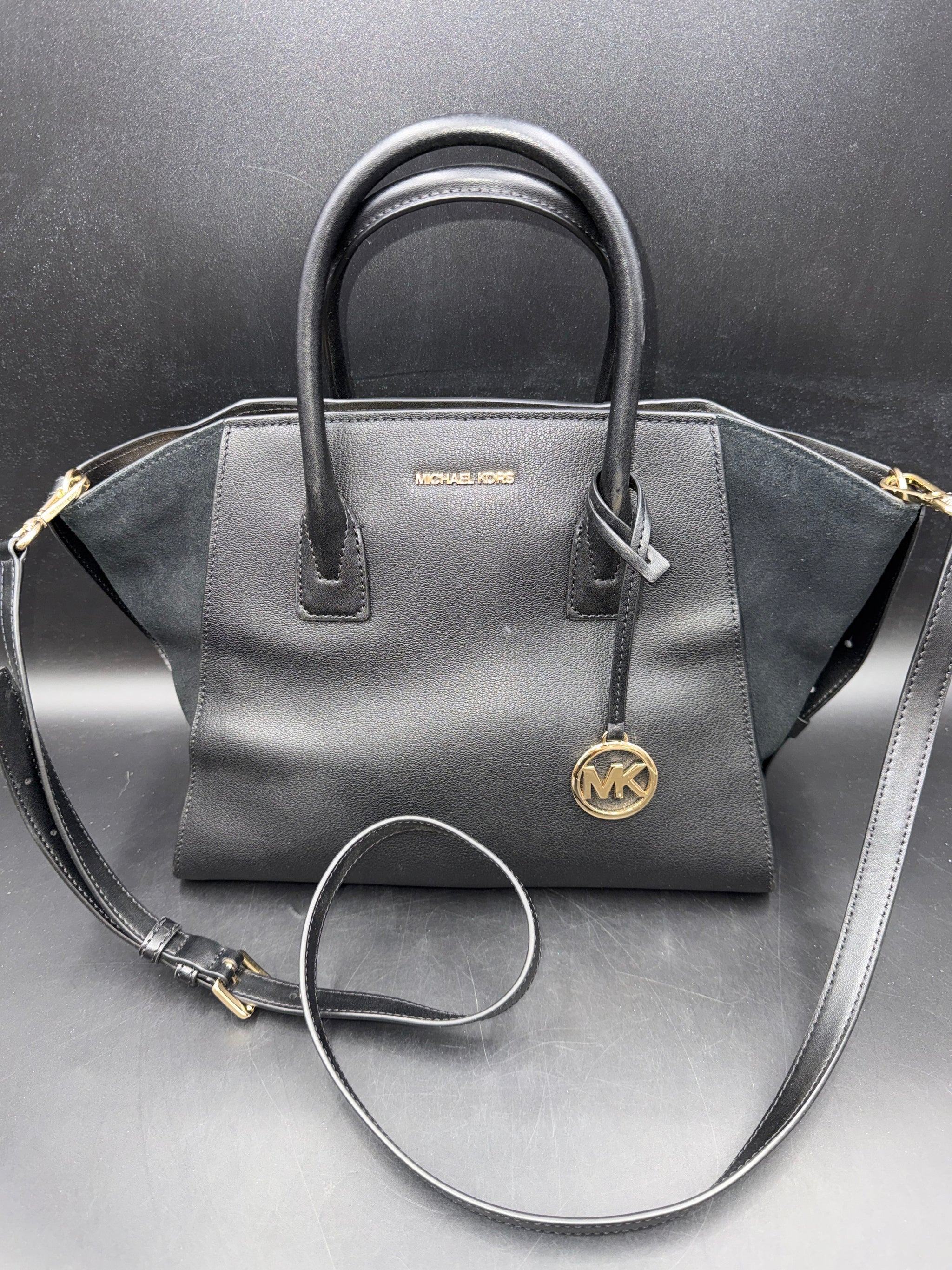 Michael Kors Black Avril Leather & Suede Satchel Crossbody Bag Gold Hardware COA