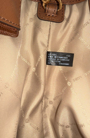 This classic Michael Kors tote features the iconic signature monogram coated canvas paired with durable Saffiano leather trim. Designed for versatility, it includes dual top handles and an adjustable shoulder strap, making it suitable for both professional and casual settings. The polished gold-tone hardware and signature MK hanging circle charm add a sophisticated finish to this structured silhouette. The interior is lined with logo-print fabric and offers organized storage for daily essentials.