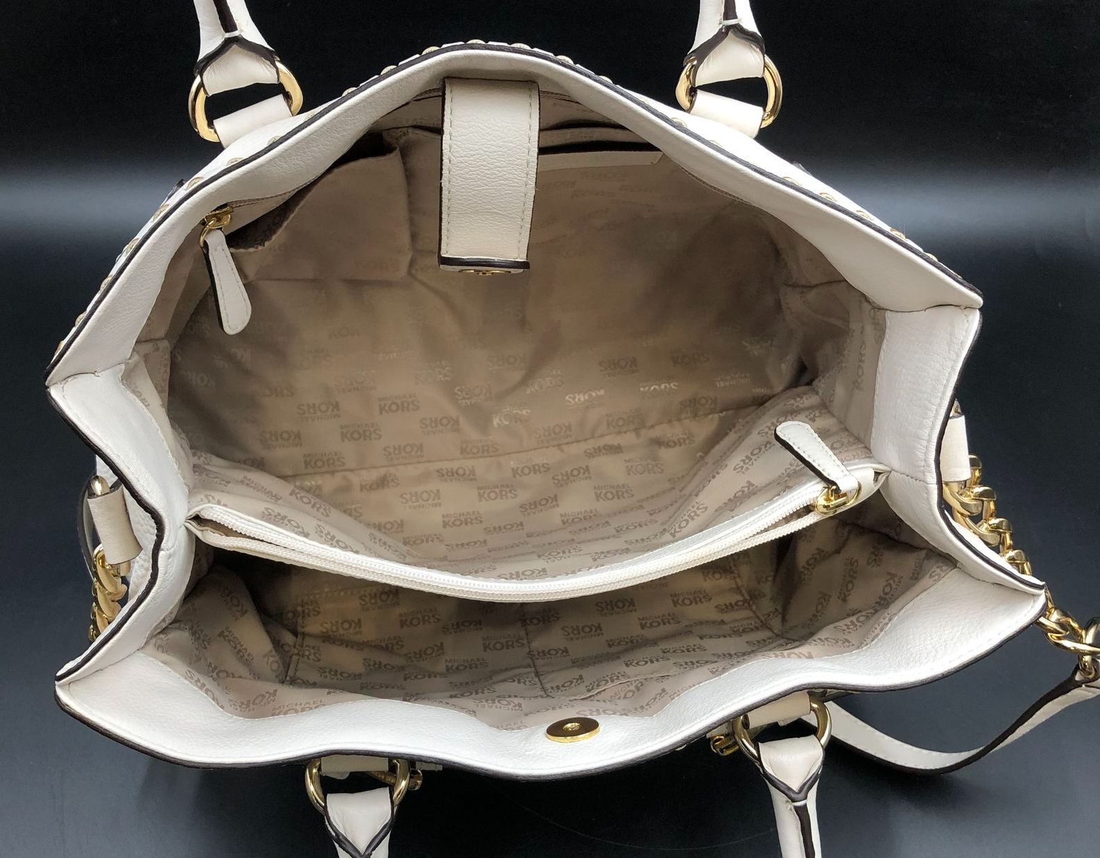 Michael Kors 'Hamilton' Cream White Pebbled Leather Tote with Gold Detail (+COA)