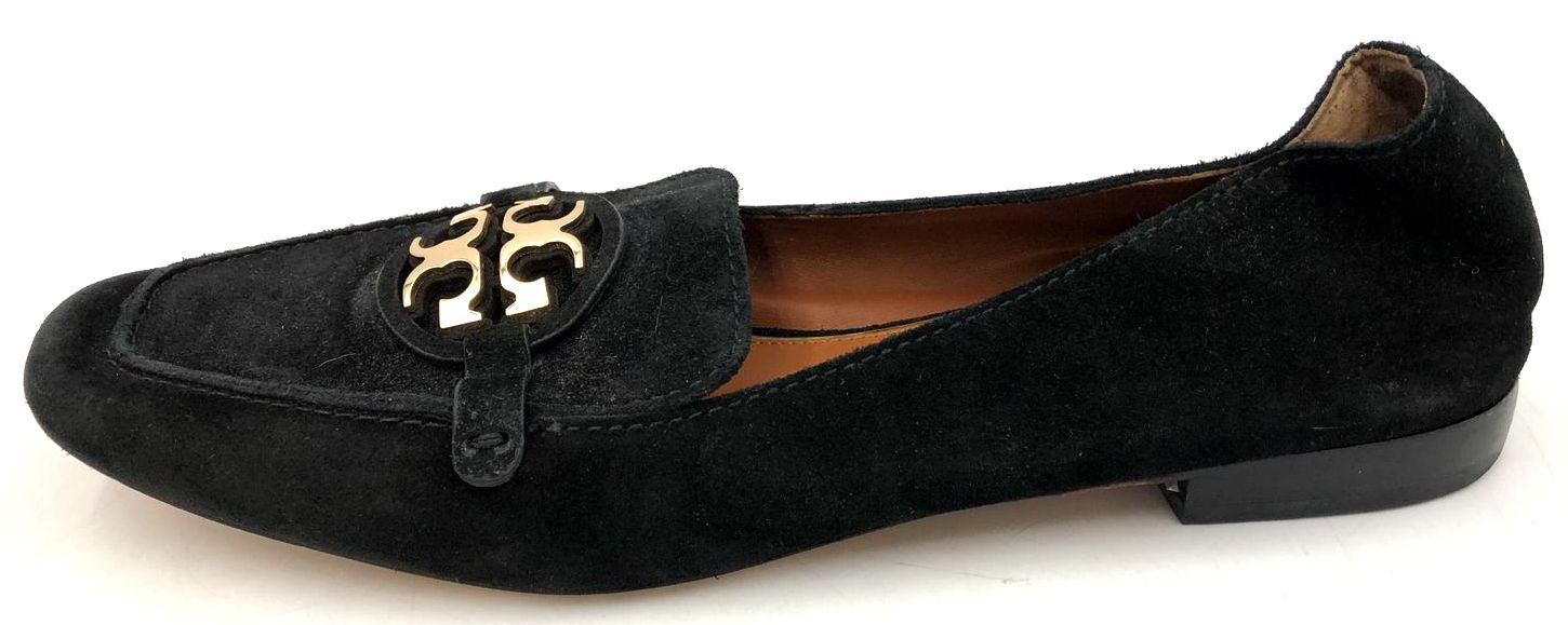 Tory Burch 'Metal Miller' Women's Black Suede Loafers with Logo - Size 10