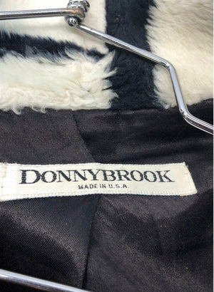 Vintage 80s Donnybrook Women's Faux Fur Coat Black White Faces Print Art Sz S