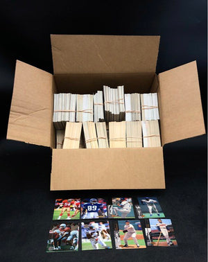 This unsorted 12.4 lbs. lot of collectible Mixed Sports trading cards offers an approximate total of 12.4 x 250 cards [Approx. 250 cards per lb] The cards have been separated, boxed, and weighed, but they have not been individually identified or evaluated. Quantities are approximate and are not a guarantee.