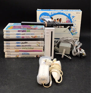 Title: Nintendo Wii Console And Accessories Lot - Just Dance Kids, uDraw Studio & More