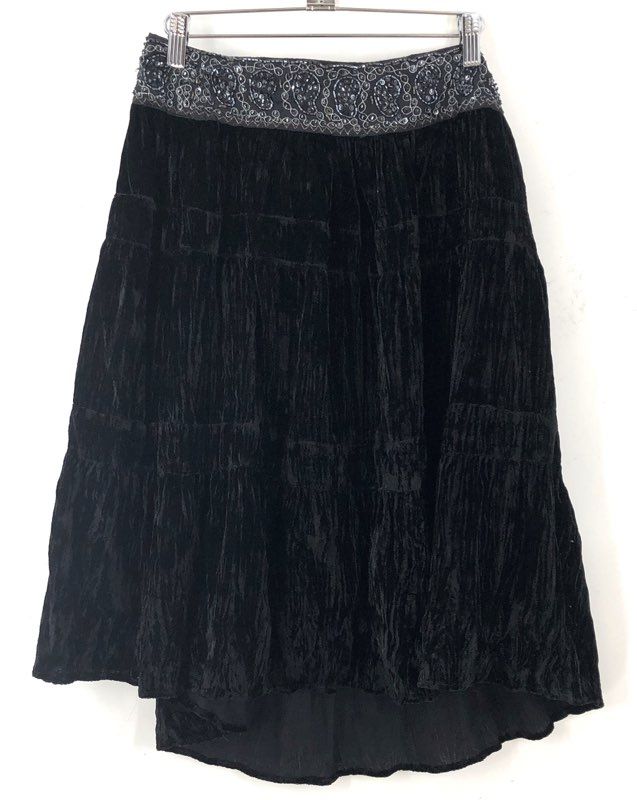 BCBGMAXAZRIA NWT Women's Black Velvet Tiered Skirt Beaded High Low Sz S