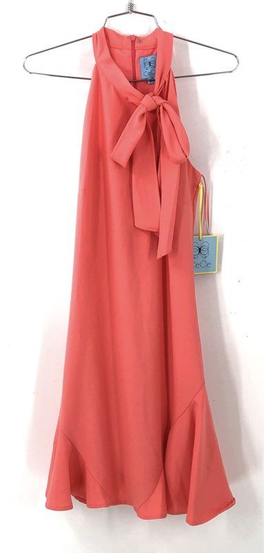 CeCe Women's NWT Coral Tie Neck Halter Asymmetrical Hem Dress Sz XS