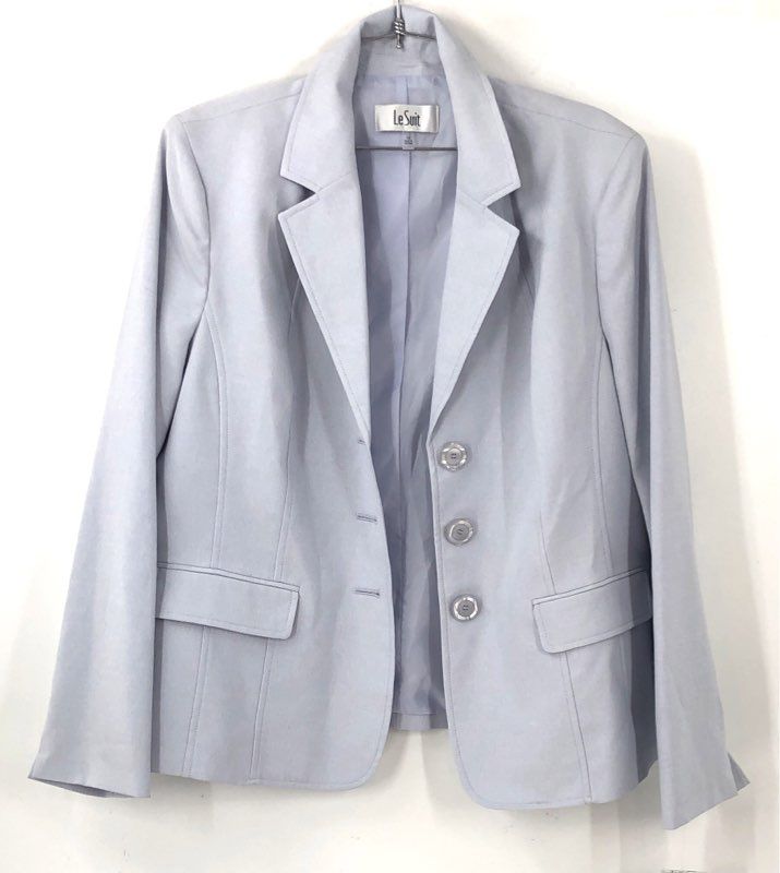 Le Suit Women's Blazer Jacket Light Blue Three Button Lined NWT Size 16