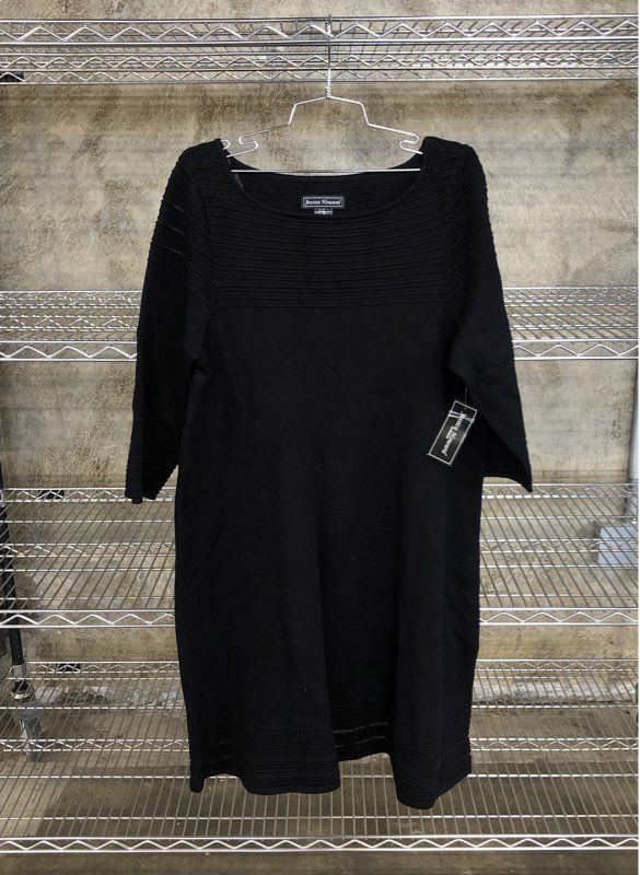 Jessica Howard Women's Sweater Dress Black NWT Ribbed Yoke Sheath Knit Size 1X