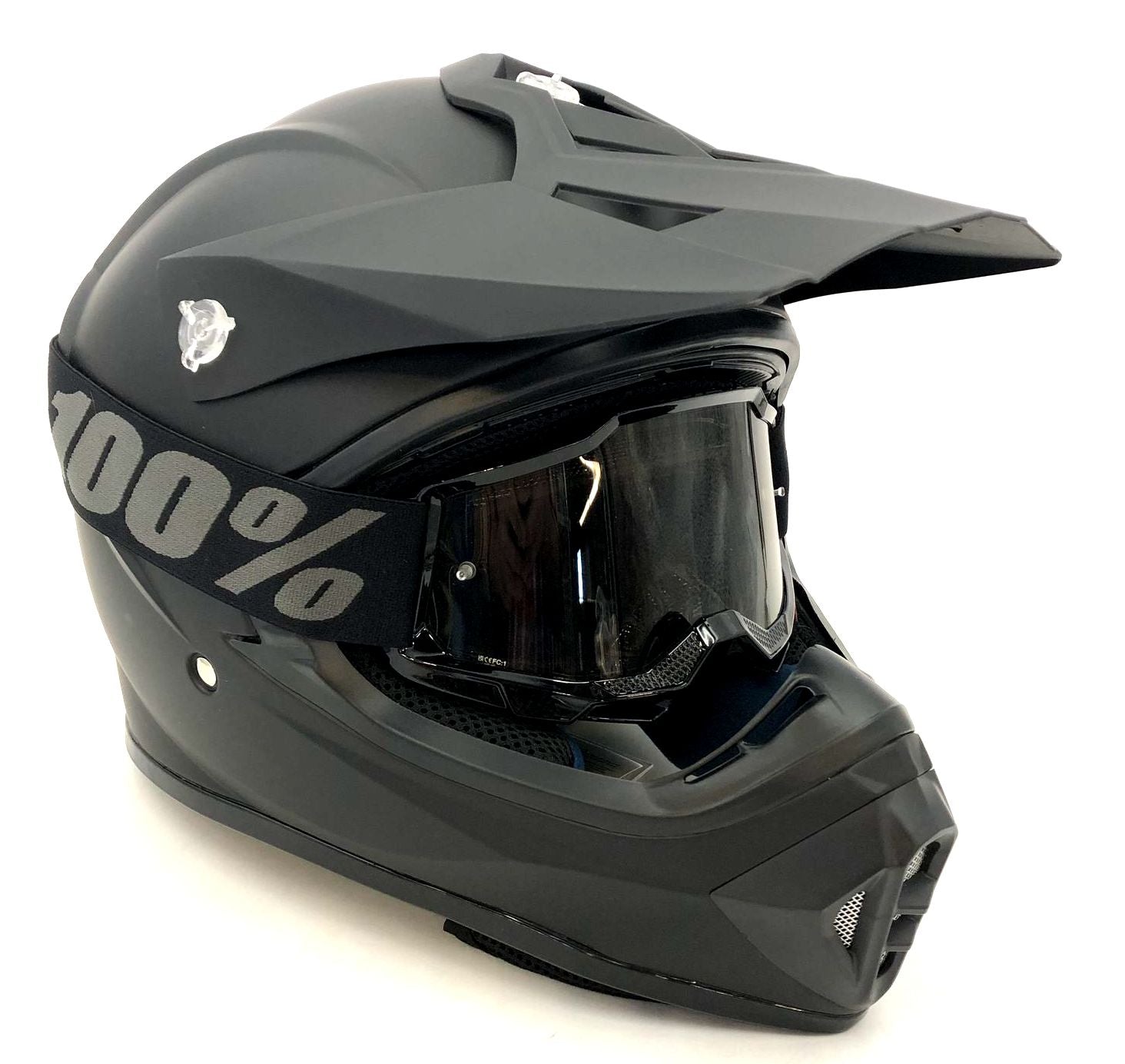 NEW ILM 128S Matte Black Full-Face Motocross Helmet with 100% Goggles - Size M