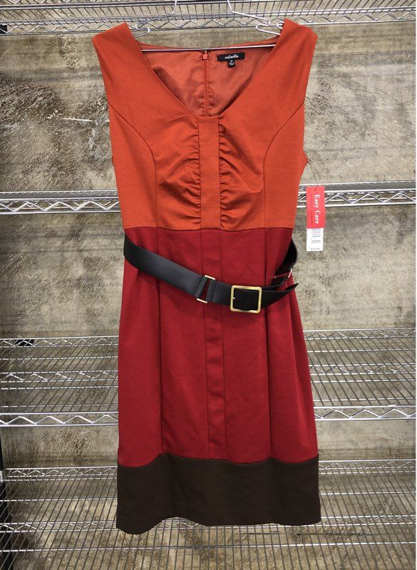 Rafaella Women's Sheath Dress Red Orange Colorblock Belted NWT Sz 12