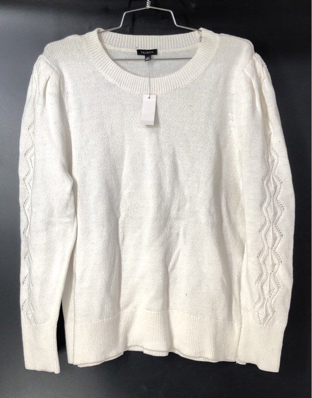 Talbots Women's White Sweater Pointelle Sleeve Cotton Crewneck NWT Sz XL