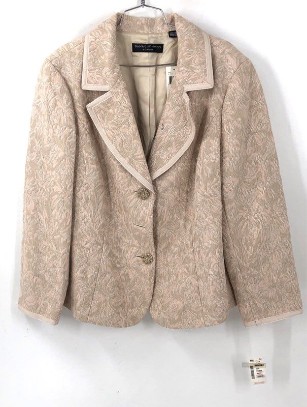 Dana Buchman Women's Blazer Jacket Tan Floral Jacquard Wool Alpaca Sz 16 NWT