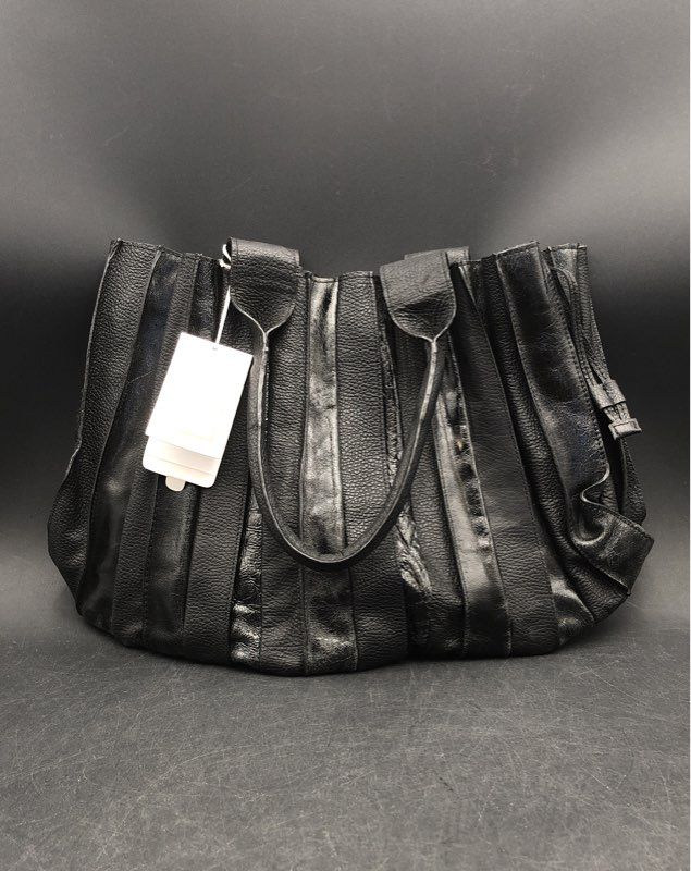 NWT Cleo & Patek Black Pleated Genuine Leather Tote Shoulder Bag