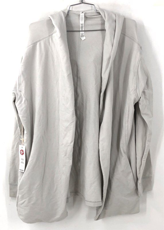 Manduka Women's Resolution Cardigan Stone Hooded Open Front Yoga NWT Sz XL