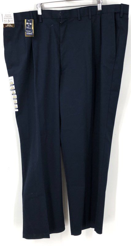 Haggar Mens NWT Big & Tall Pleated Classic Stretch Khakis Dark Navy 46x30