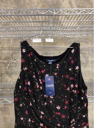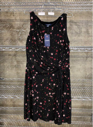 Chaps Women's NWT Black Floral A-Line Dress Sleeveless Knot Front Size XL
