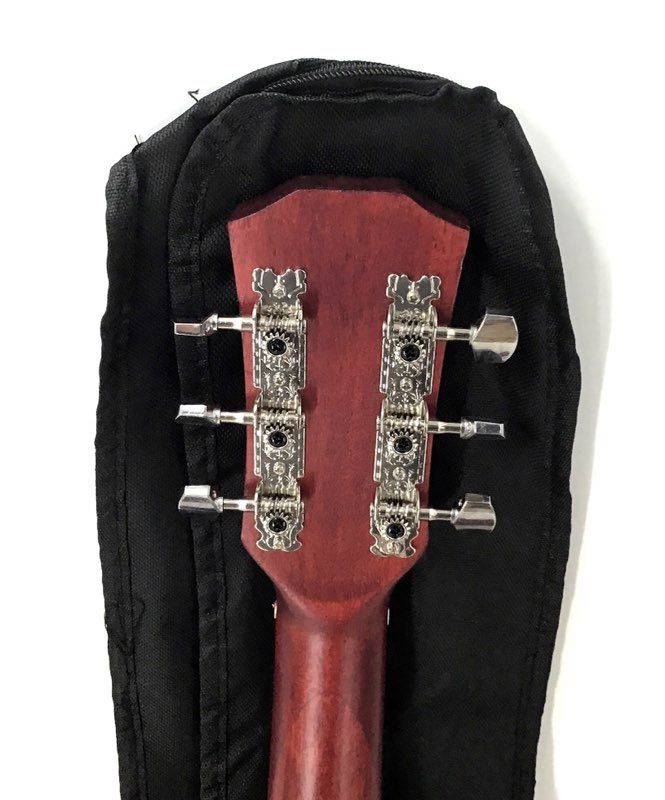 Condition: Good condition with minimal signs of use. The finish is clean with no visible cracks or structural damage. Tuners are functional and hold tension. The instrument is currently strung and includes a complete accessory pack with a gig bag, strap, pick, and spare strings.