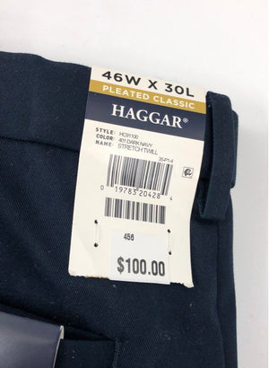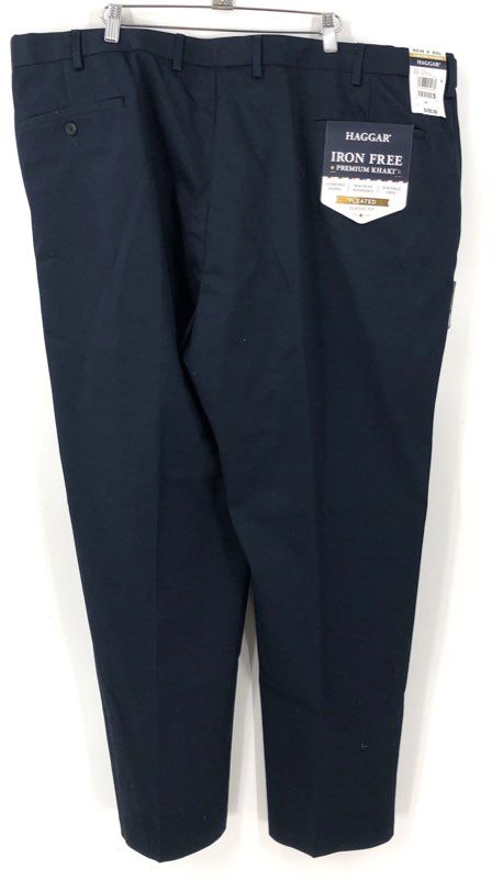 Haggar Mens NWT Big & Tall Pleated Classic Stretch Khakis Dark Navy 46x30
