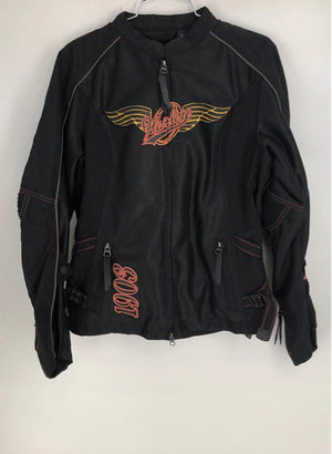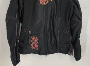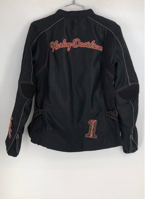 **Title:** Harley-Davidson Women's Black Orange Motorcycle Jacket - Size L