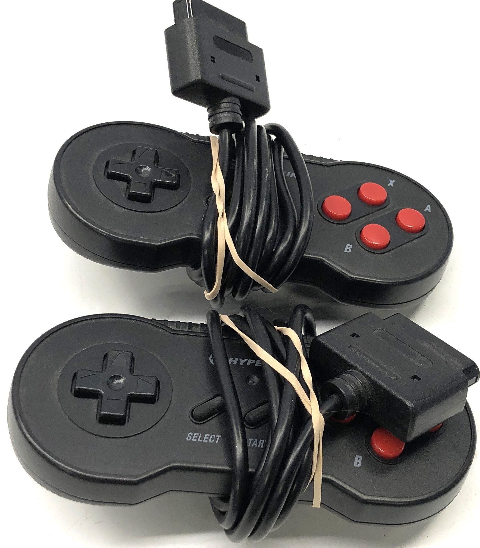 • Two Hyperkin wired controllers included (SNES-style with red buttons)
