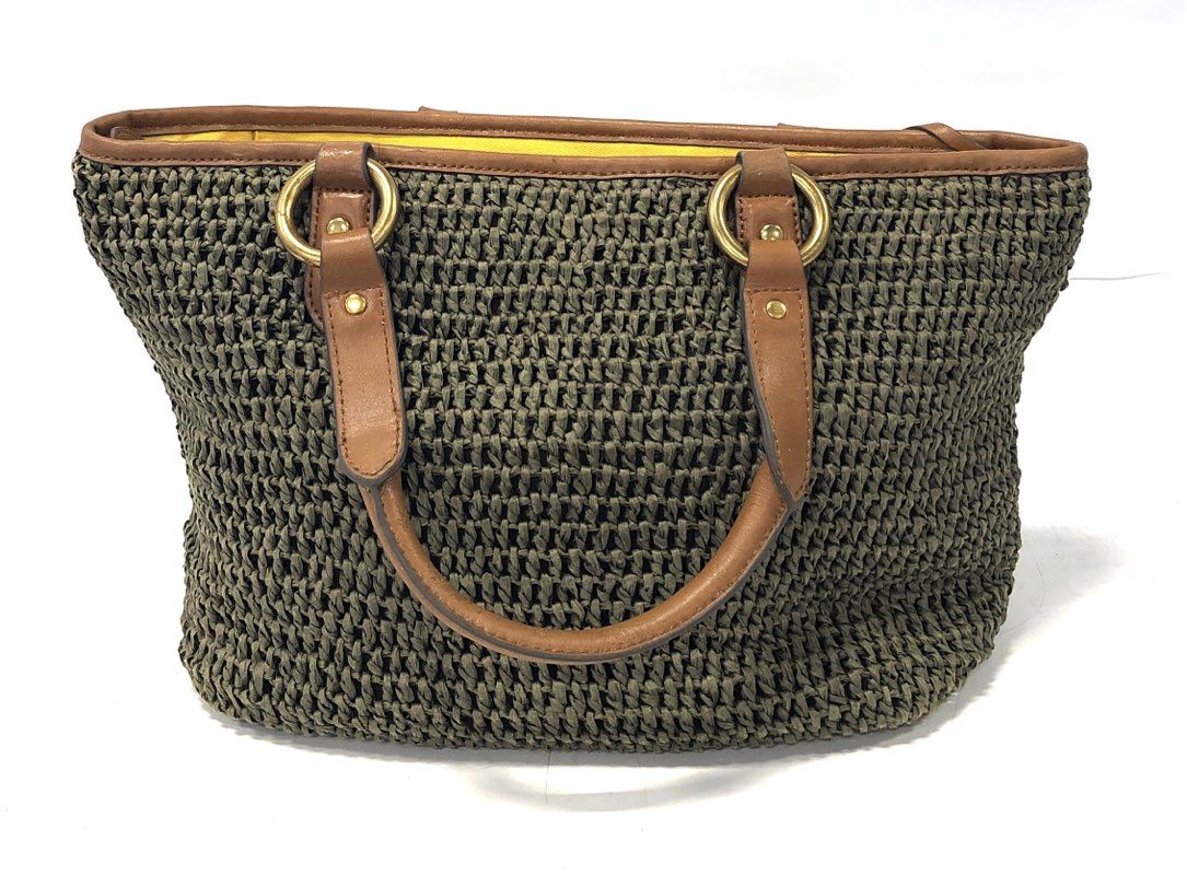 Lauren Ralph Lauren Claridge Olive Green Straw Tote Bag