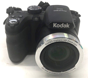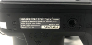 2. Kodak PIXPRO AZ421 — Black body bridge camera. Model visible on top and bottom label. Features a 42x optical zoom lens (24-1008mm equivalent).