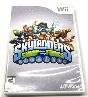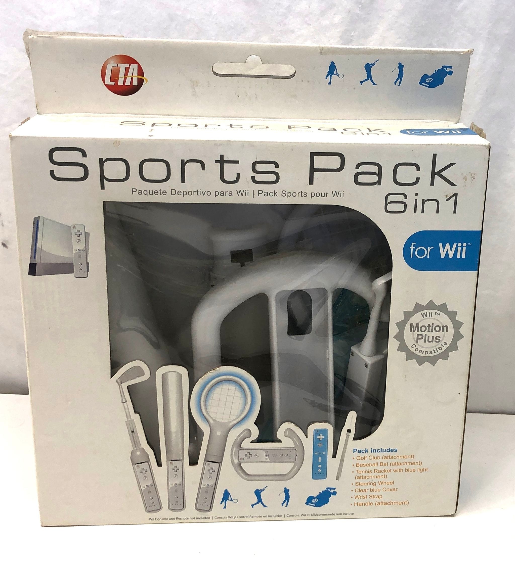 Condition: Console shell shows moderate cosmetic wear with surface scuffs, light scratches, and some visible dust in vents. All ports are intact and clean. Skylanders Swap Force is included in its original retail case; the disc surface is not visible but the case artwork is clean. The CTA Bowling Ball accessory shows light surface scratches from previous use. The Sports Pack 6-in-1 includes original packaging with shelf wear; internal attachments are visible through the window. Portal of Power and sensor bar cables are intact with no fraying. NOTE: Standard Wii Remotes and AV cables are NOT included.