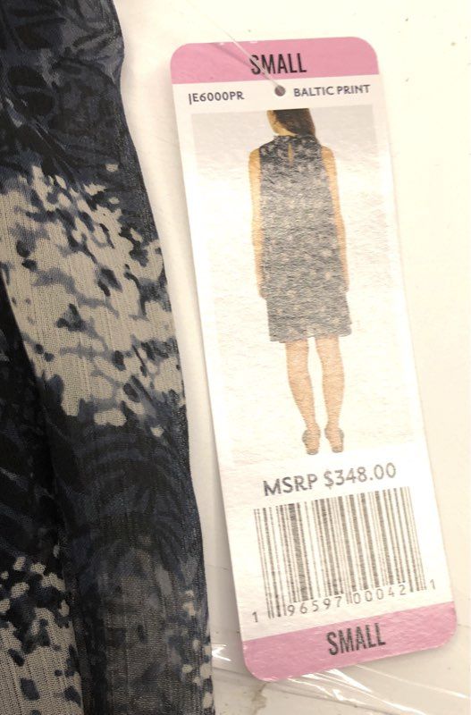 This Joie dress is crafted from a lightweight, sheer 100% polyester fabric in an abstract "Baltic Print". It features a sleeveless, A-line silhouette with a smocked mock neckline for a sophisticated touch. The dress is fully lined and has a keyhole detail at the back. Original MSRP of $348.