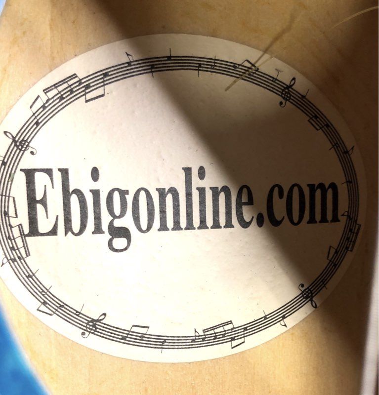 This Sky 6-string acoustic guitar features a vibrant teal-blue sunburst finish, making it a visually striking choice for aspiring musicians. Designed as a dedicated beginner or student instrument, its compact body size offers a comfortable playing experience for younger players or those looking for a portable travel guitar. The internal label identifies the instrument via Ebigonline.com, a known distributor of accessible musical equipment. The body is accented by a traditional decorative rosette and a dark-finished bridge with white bridge pins.