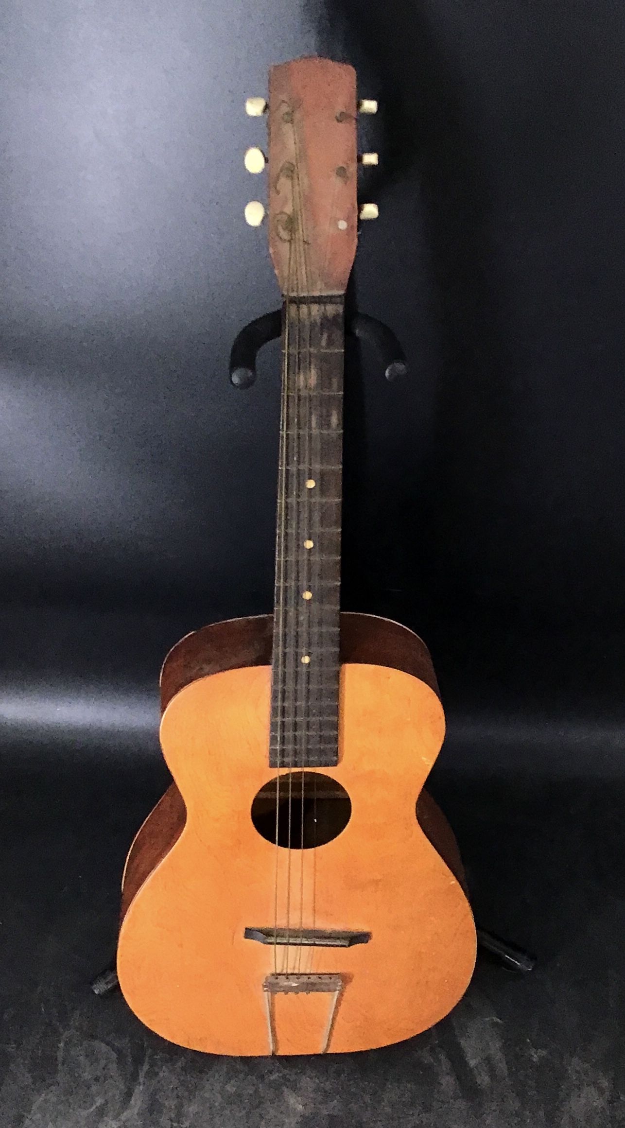 Vintage Unbranded Parlor Acoustic Guitar 6-String Trapeze Tailpiece Project