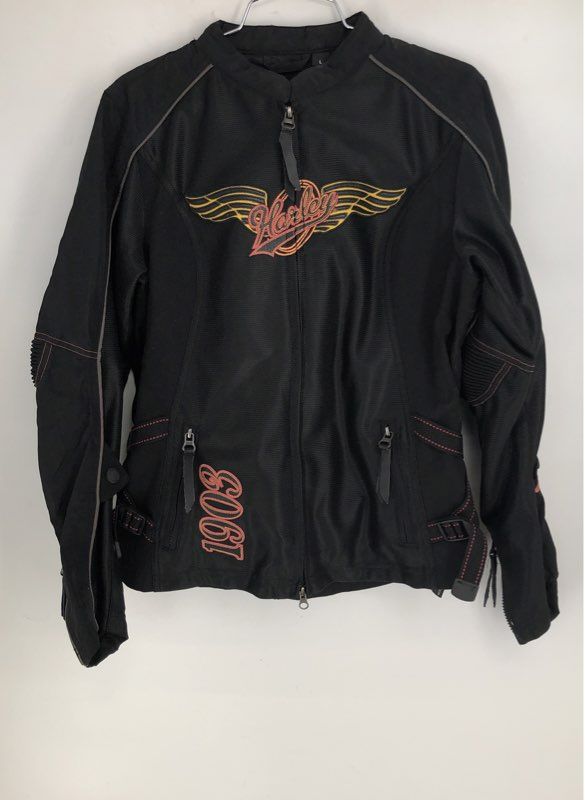 Harley-Davidson Women's Black Orange Motorcycle Jacket - Size L