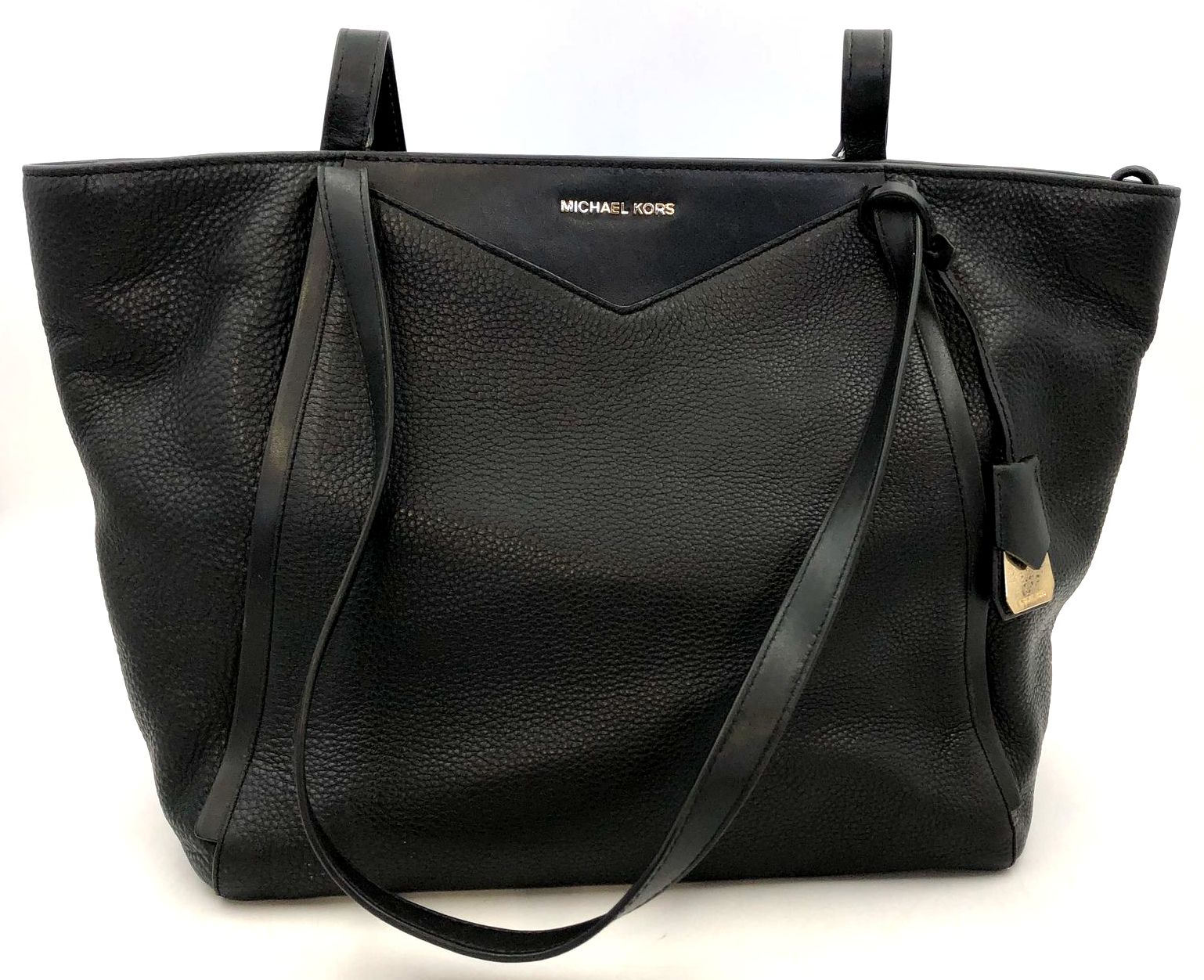 Michael Kors 'Whitney' Black Pebbled Leather Tote with Gold-Tone Hardware (+COA)