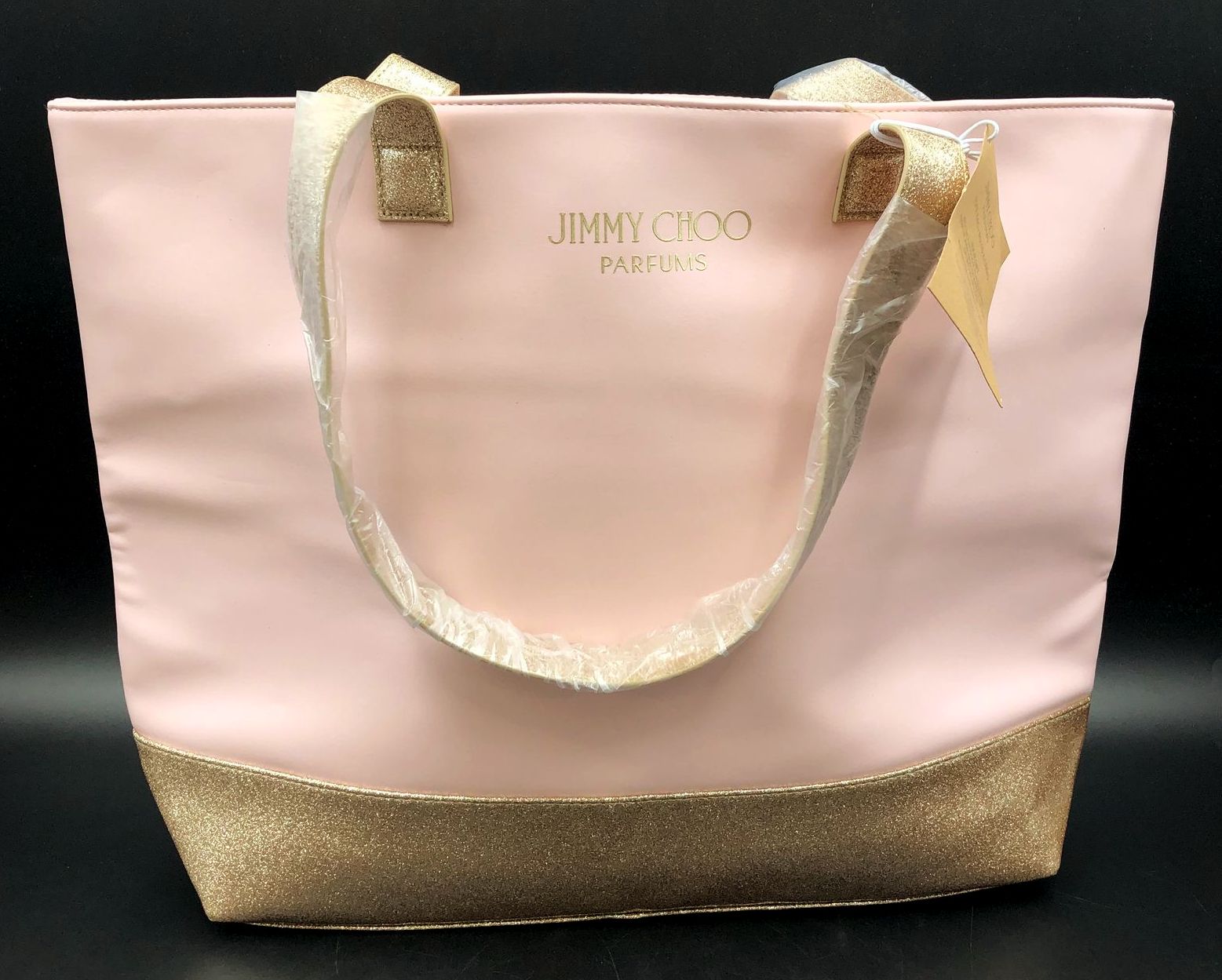 Jimmy Choo Parfums Large Pink/Metallic Glitter Gold Designer Faux Leather Tote