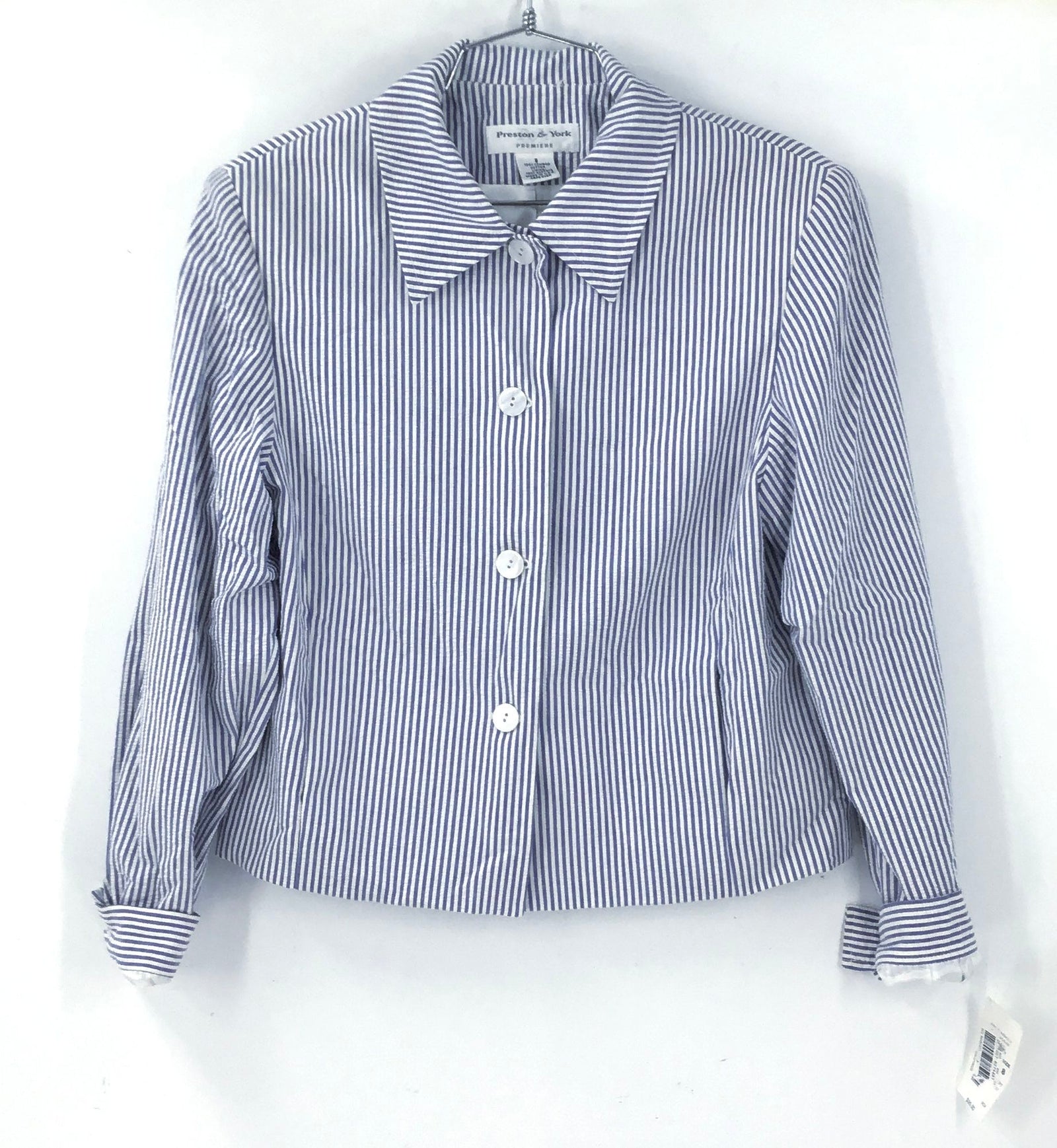 NWT Preston & York Premiere Women's Blue White Striped Jacket - Size 8