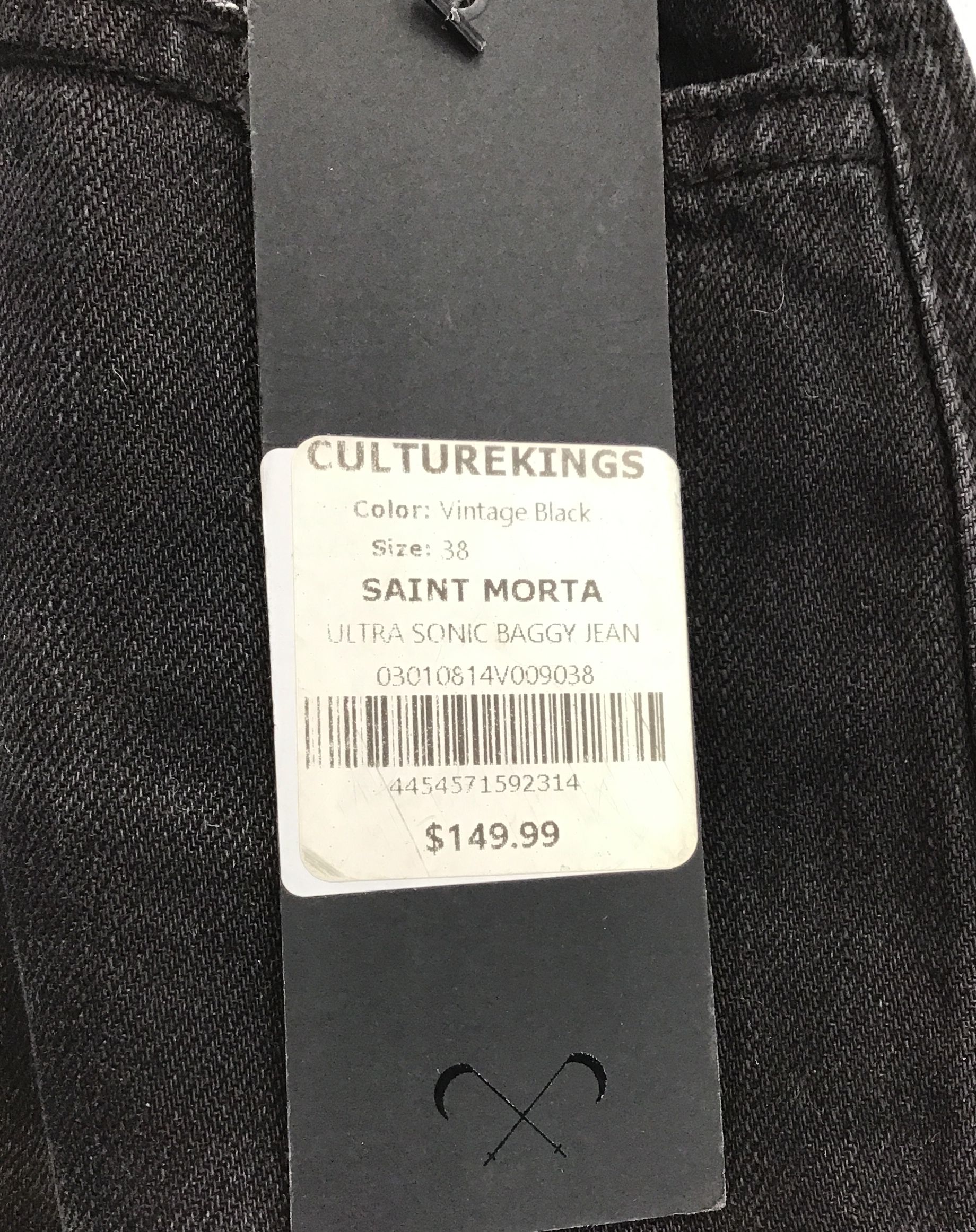 NWT Saint Morta Men's Black Cotton Baggy Straight Jeans - Size 38
