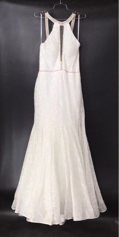 2Cute Women's Formal Gown Prom Dress White Halter Keyhole Beaded Lace Size 16