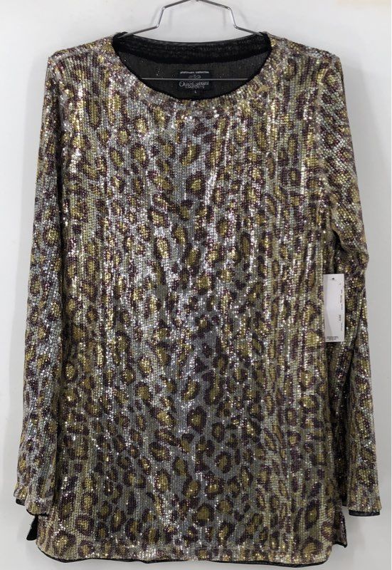 NWT Oleg Cassini Women's Multicolor Animal Print Blouse - Size L
