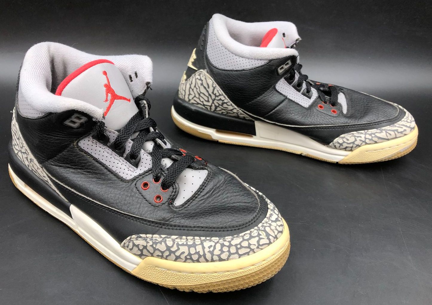 Nike Air Jordan 3 Retro OG BG 'Black Cement Grey' & Red Sneakers - Sz 7Y (+COA)