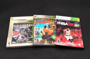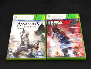 Condition: Overall, the games are in good pre-owned condition. All Xbox 360 games are in their original green cases. Some cases show wear, including sticker residue and minor scuffs, particularly on NBA 2K12 and 2K15. Banjo-Kazooie and Call of Duty 2 are Platinum Hits versions and have some tears in the outer plastic wrap. The Sega Superstars Tennis game is a loose disc and does not include a case or manual. Completeness of manuals for cased games is not verified.