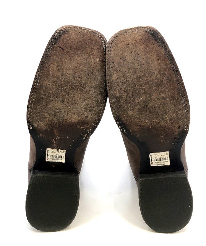 Condition: Good pre-owned condition. The uppers show moderate creasing, scuffing, and marks consistent with regular use. The outsoles have significant wear, particularly on the leather portions. Heels show some drag. Please see all photos for a detailed view of the condition.