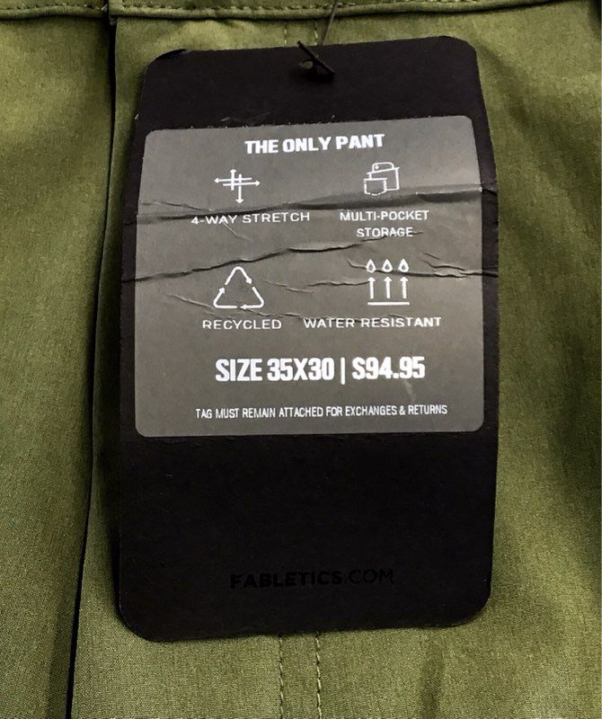 Fabletics Men's The Only Pant Olive Green Stretch Chinos Pants Size 35x30 NWT