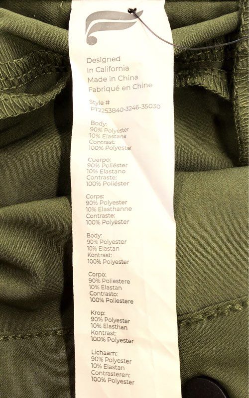 These are the Fabletics "The Only Pant" for men in an olive green color. Constructed from a durable and flexible polyester-elastane blend, these pants feature 4-way stretch for comfort and mobility. The fabric is also water-resistant, making them versatile for various conditions. These pants offer a modern, straight-leg chino style suitable for both casual and active wear.